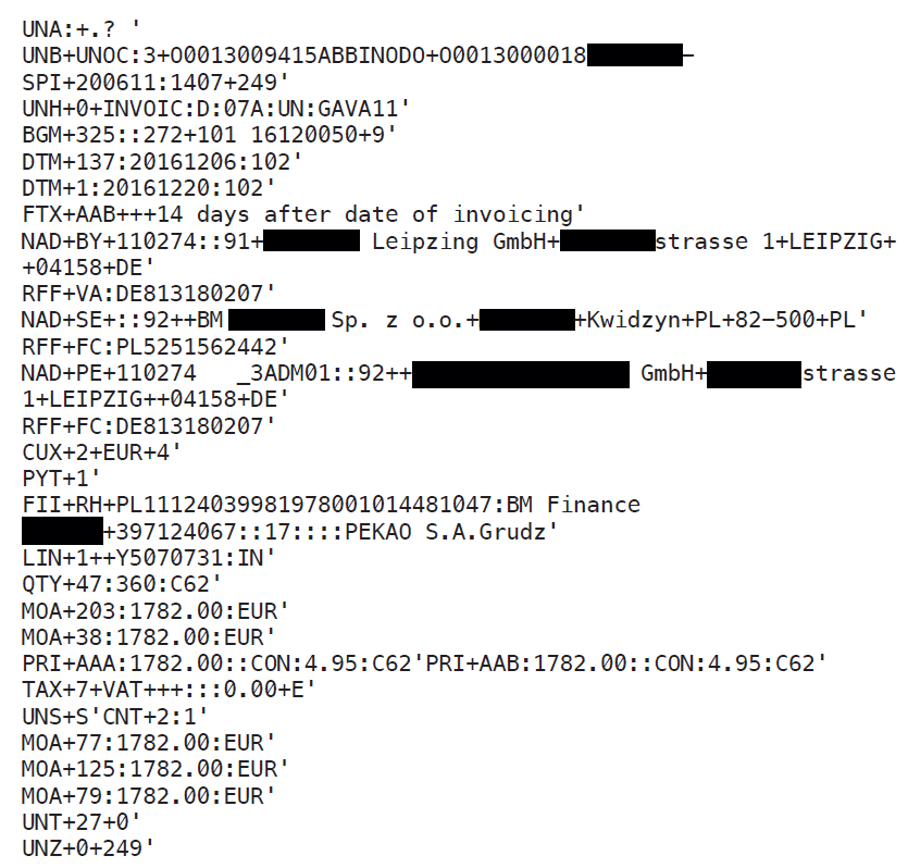 Die EDIFACT-Datei sieht auf den ersten Blick sehr unübersichtlich aus, dahinter verbirgt sich jedoch ein schematischer Aufbau. Hinter der jeweiligen Datei liegt ein bestimmter EDI-Standard, der den Aufbau vorgibt. Prinzipiell ist die EDIFACT-Datei einer einfachen Textdatei ähnlich, die mit einem Texteditor geöffnet werden kann.