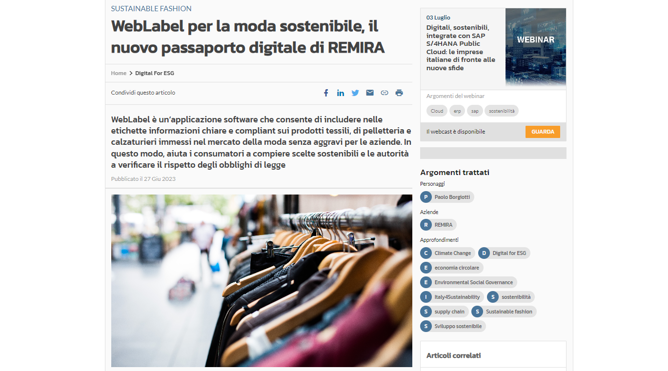 WebLabel per la moda sostenibile, il nuovo passaporto digitale di REMIRA - Network Digital360